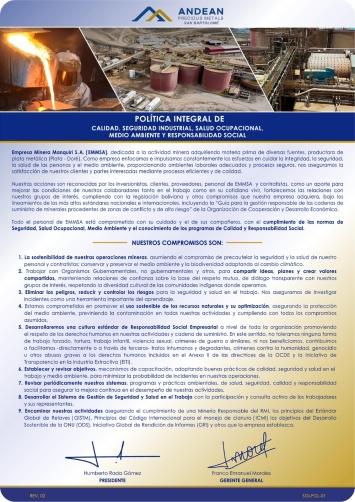 POLÍTICA INTEGRAL DE SEGURIDAD INDUSTRIAL, SALUD OCUPACIONAL, MEDIO AMBIENTE Y RESPONSABILIDAD SOCIAL